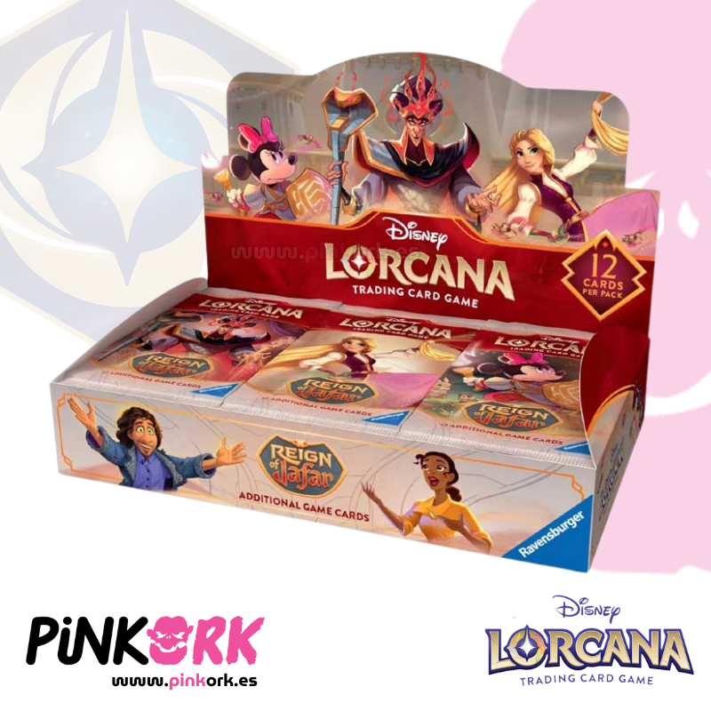 En Pinkork, tu tienda de juegos de cartas coleccionables referencia en España, puedes comprar Disney Lorcana Chapter 8 en stock y con envío inmediato. ¿Buscas potenciar tu mazo o completar tu colección? Este booster box de Reign of Jafar es el impulso que necesitas.