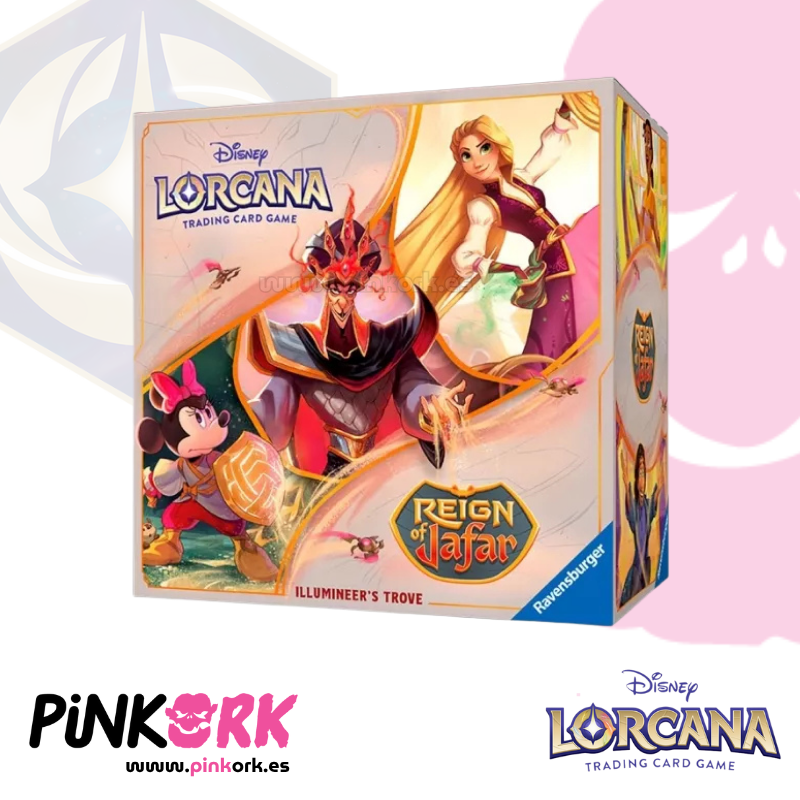 Ya disponible en stock el Illumineer's Trove de Reign of Jafar (Chapter 8), el set premium ideal para jugadores avanzados y coleccionistas de Disney Lorcana. Este pack completo te ofrece almacenamiento de calidad, sobres para ampliar tu mazo y accesorios exclusivos para llevar el control de tus partidas. Todo presentado en una caja ilustrada espectacular. Disponible ahora en www.pinkork.es.