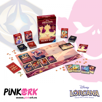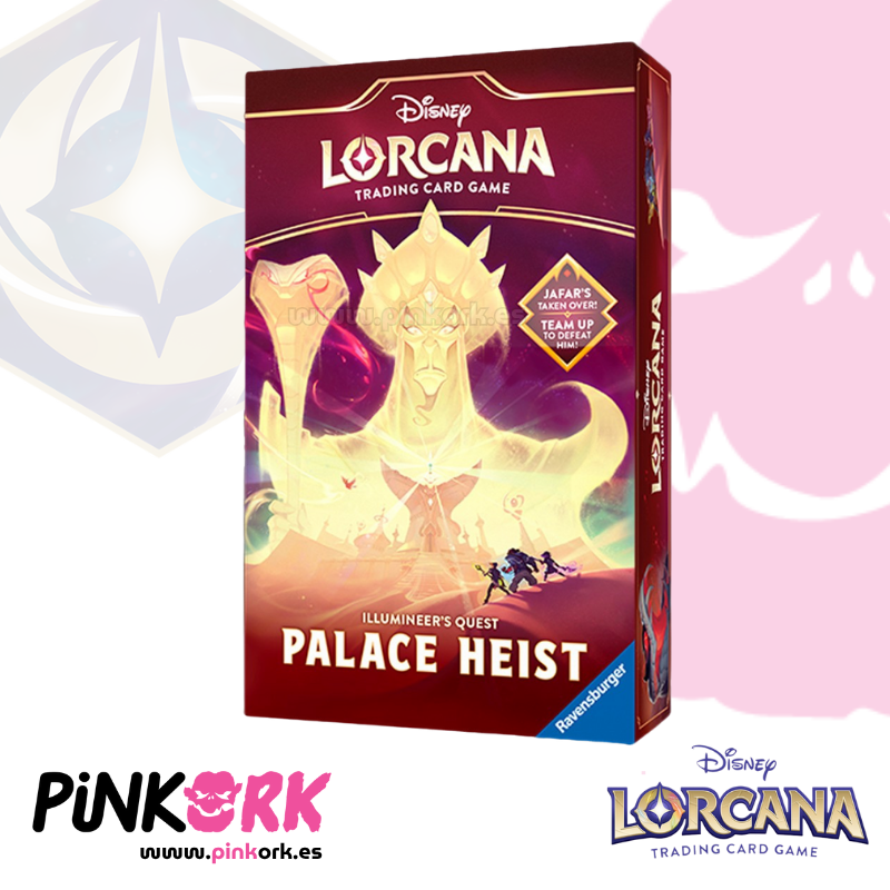 En Pinkork, tu tienda especializada en Disney Lorcana TCG en España, puedes comprar Illumineer’s Quest: Palace Heist en stock con envío inmediato, y vivir esta aventura cooperativa tanto en solitario como acompañado. ¡Prepárate para infiltrarte en el palacio y enfrentarte al mismísimo Jafar!