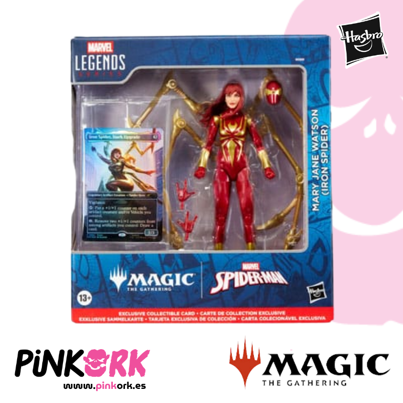¡La icónica Mary Jane Watson se enfunda el traje del Iron Spider en esta espectacular figura coleccionable de la línea Marvel Legends, creada en colaboración con Magic: The Gathering! Un imprescindible tanto para fans del universo arácnido como del juego de cartas más famoso del multiverso.