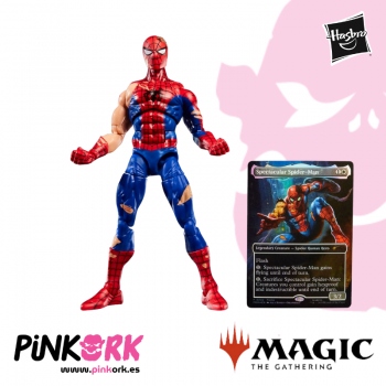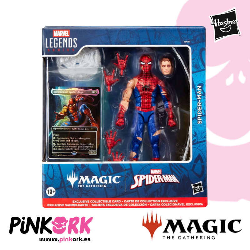 Haz que el poder arácnido cobre vida con esta impresionante figura de Spider-Man con daños de batalla, parte de la colaboración entre Marvel Legends de Hasbro y Magic: The Gathering. Una pieza coleccionable para fans de Spider-Man y del juego de cartas más famoso del multiverso.
