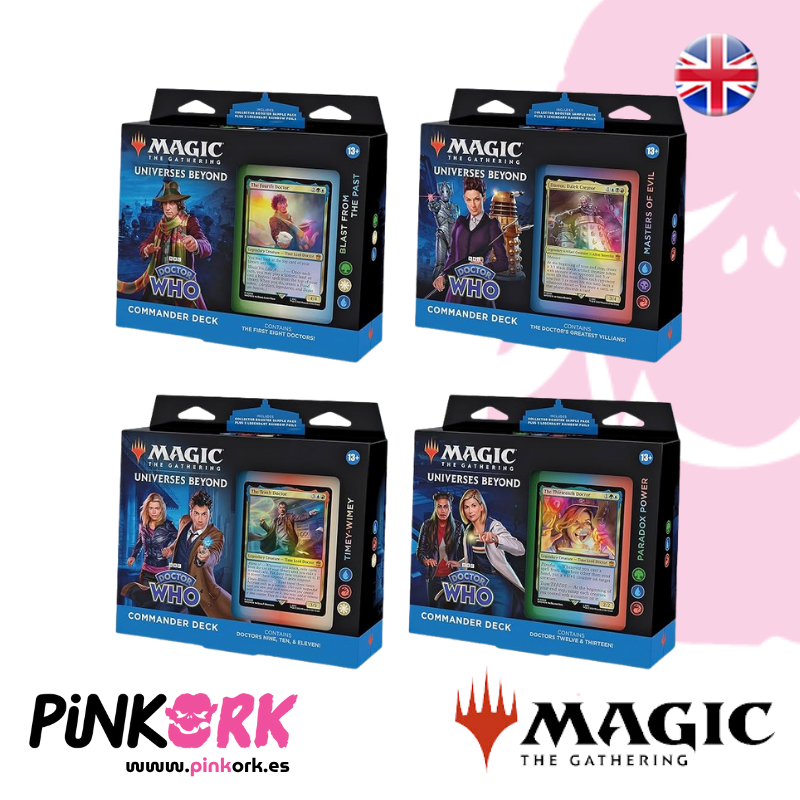 📦 ¡Hazte con los 4 mazos y añade un toque de ciencia ficción británica a tus partidas de MTG! Disponible ya en www.pinkork.es, tu tienda de confianza en TCG, coleccionables y fandom.