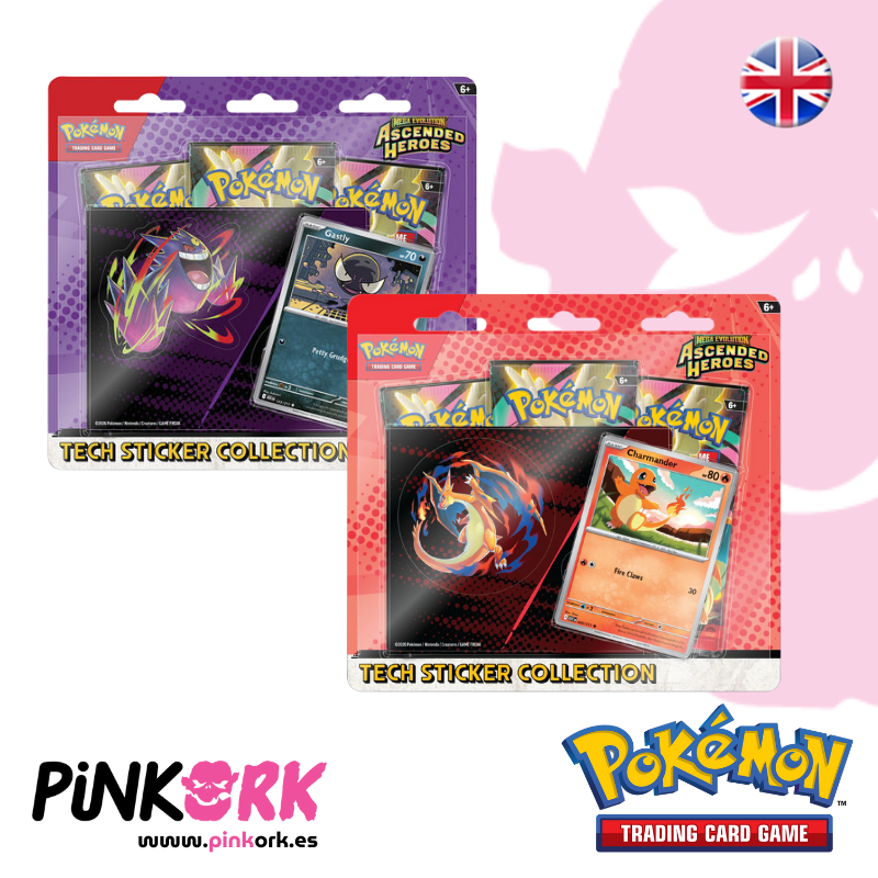 ¡Celebra el poder de la Megaevolución con un toque especial de estilo! El set Tech Sticker Collection de la expansión Ascended Heroes del JCC Pokémon combina cartas promocionales exclusivas con una hoja de pegatinas tecnológicas para decorar tus dispositivos, archivadores o cualquier lugar donde quieras mostrar tu pasión por Pokémon.