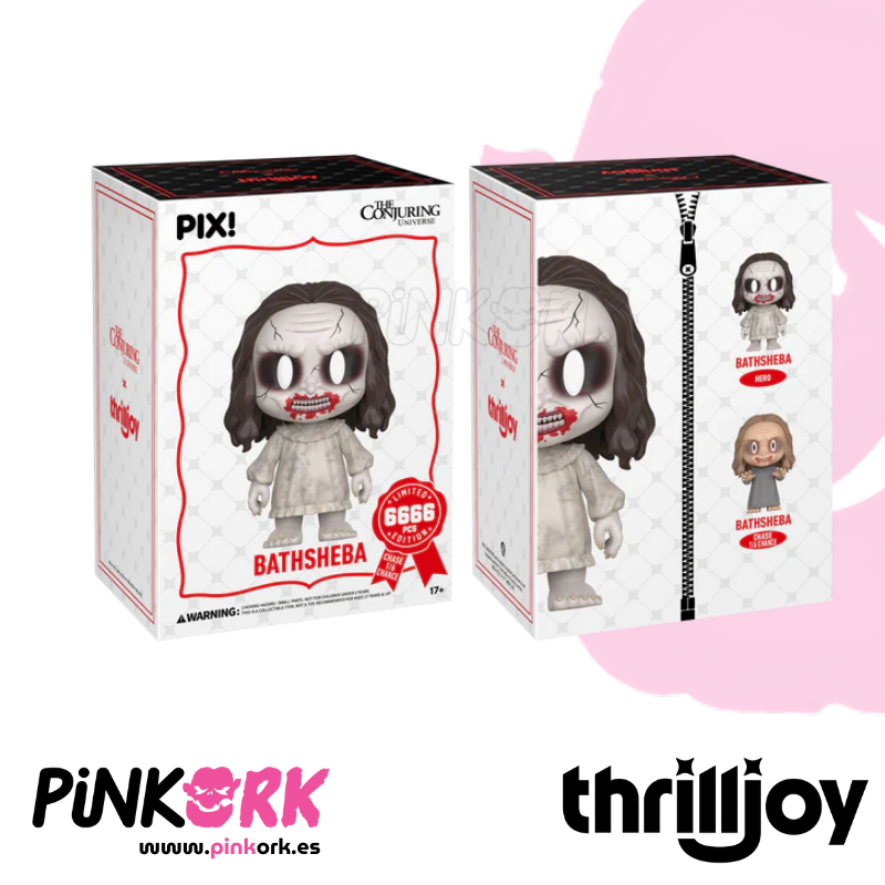 Bathsheba Sherman es uno de los espíritus más memorables del universo cinematográfico de The Conjuring, inspirada en una figura real y convertida en uno de los antagonistas más aterradores del cine moderno. Su aparición en la primera película de la saga marcó el inicio de un universo cinematográfico de horror con millones de seguidores. Esta figura Thrilljoy PIX! captura su esencia maldita en una presentación elegante, compacta y perfectamente inquietante.