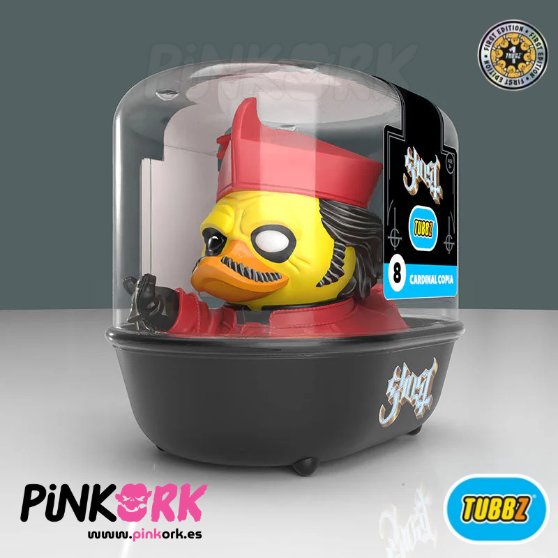 El TUBBZ 1st Edition de Cardinal Copia convierte al carismático líder de la banda Ghost en un pato coleccionable de 10 cm. Su detallado atuendo y maquillaje hacen de esta figura una pieza única dentro de la línea First Edition, con sello en la base y pegatina en el packaging. Disponible en www.pinkork.es, ideal para fans del rock y el coleccionismo.